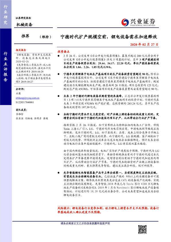 【兴业证券】【20200227】宁德时代扩产规模空前,锂电设备需求加速释放-4页