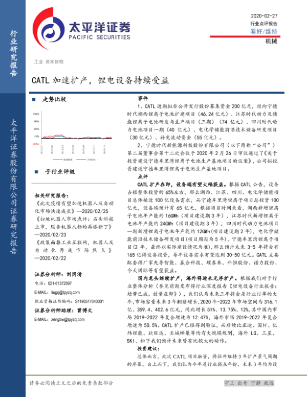【太平洋证券】【20200227】CATL加速扩产,锂电设备持续受益-5页