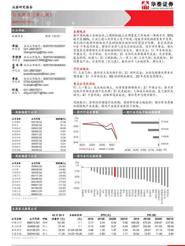 【华泰证券】【20200301】20200301-华泰证券-机械设备行业周报(第九周)-10页
