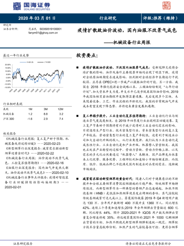 【国海证券】【20200301】20200301-国海证券-机械设备行业周报:疫情扩散致油价波动,国内油服不改景气成色-17页