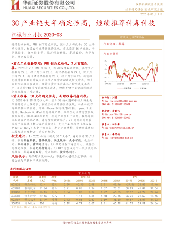 【华西证券】【202003】机械行业月报:3C产业链大年确定性高,继续推荐科森科技-16页
