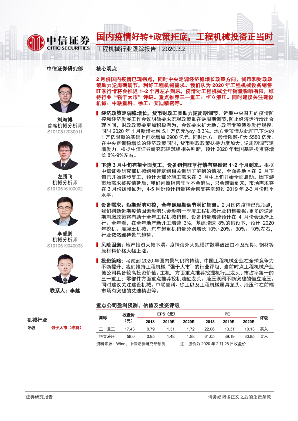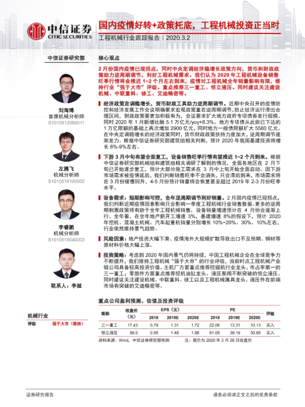 【中信证券】【20200302】国内疫情好转+政策托底,工程机械投资正当时-7页