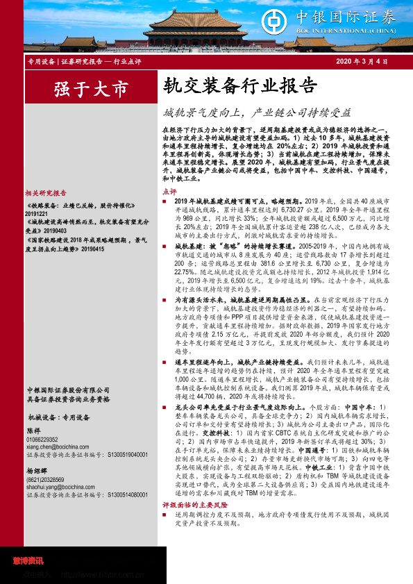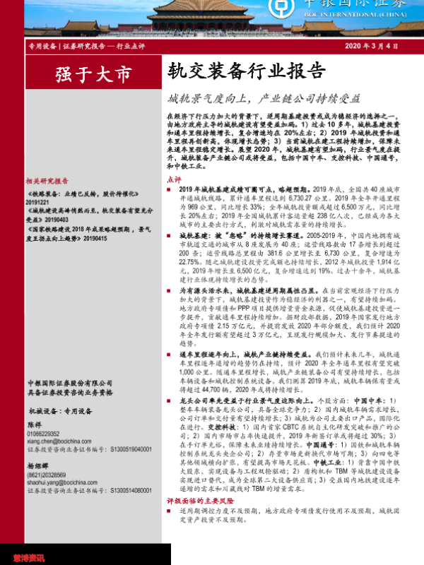 【中银证券】【20200304】20200304-中银证券-轨交装备行业报告:城轨景气度向上,产业链公司持续受益-9页