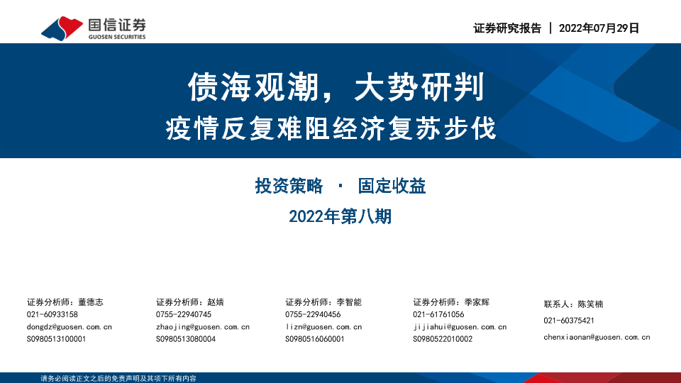 【国信证券】【20220729】固定收益2022年第八期:债海观潮,大势研判,疫情反复难阻经济复苏步伐-75页