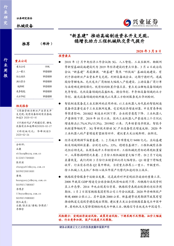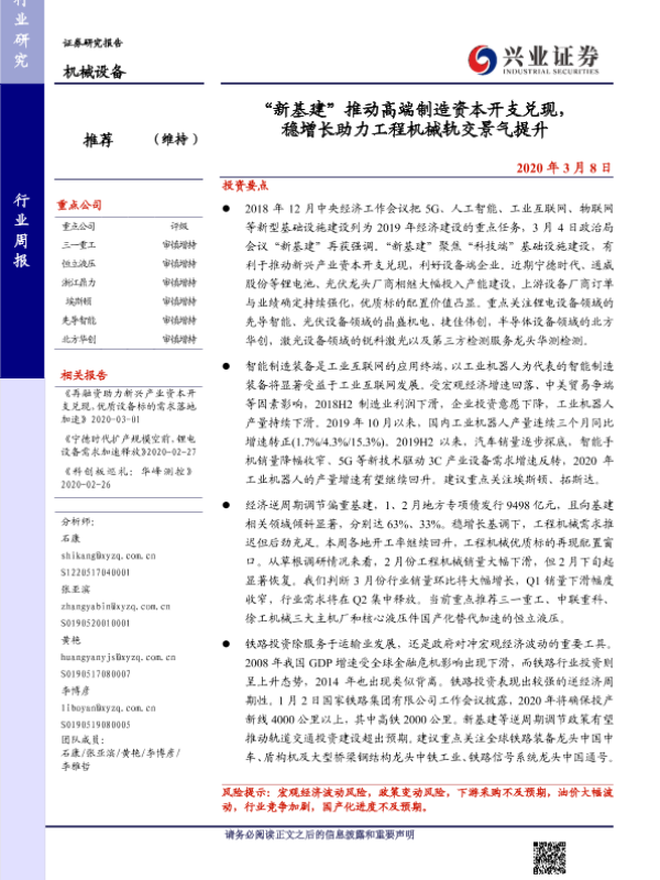 【兴业证券】【20200308】20200308-兴业证券-机械设备行业周报:“新基建”推动高端制造资本开支兑现,稳增长助力工程机械轨交景气提升-14页