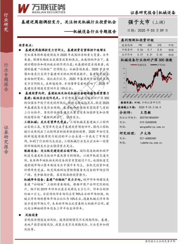 【万联证券】【20200309】机械设备行业专题报告:基建逆周期调控发力,关注相关机械行业投资机会-20页