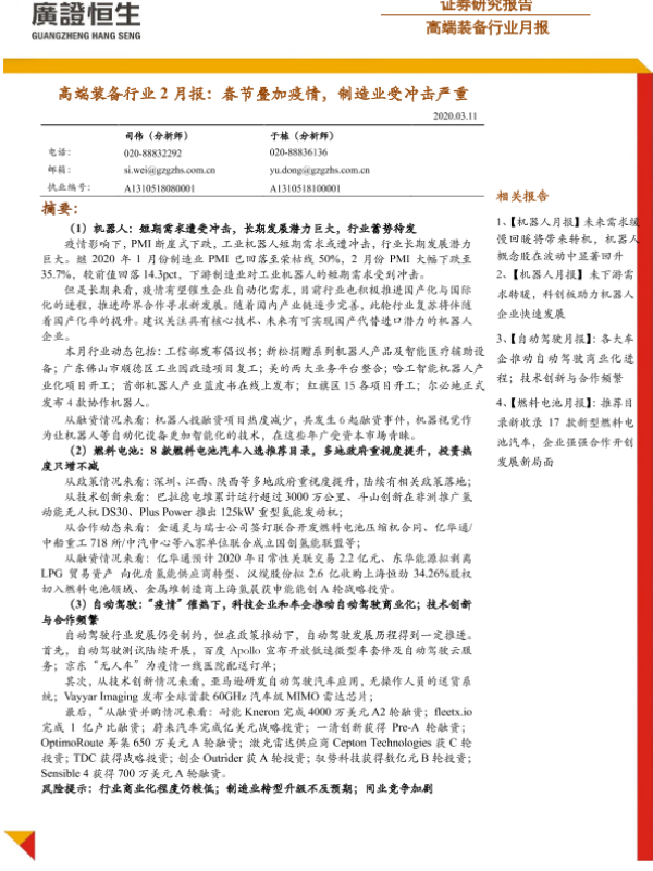 【广证恒生】【20200311】高端装备行业2月报:春节叠加疫情,制造业受冲击严重-21页