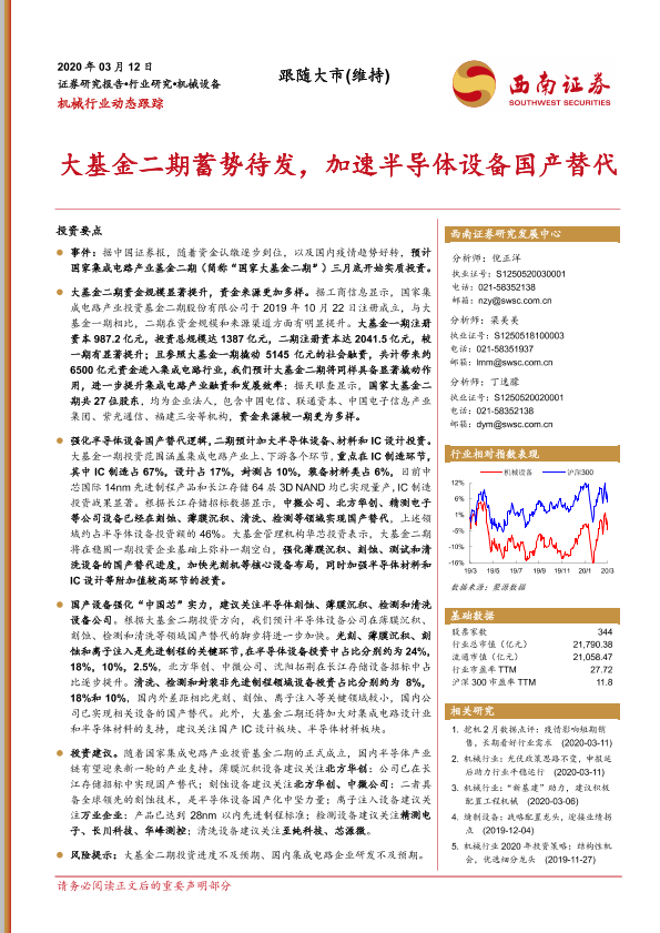 【西南证券】【20200312】机械行业动态跟踪:大基金二期蓄势待发,加速半导体设备国产替代-3页