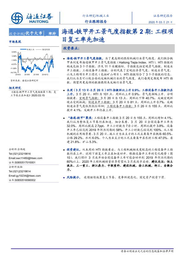 【海通证券】【20200321】海通-铁甲开工景气度指数第2期:工程项目复工率先加速-5页