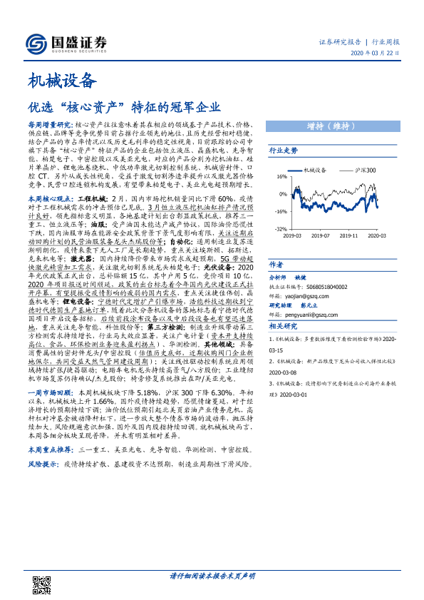 【国盛证券】【20200322】机械设备行业周报:优选“核心资产”特征的冠军企业-11页