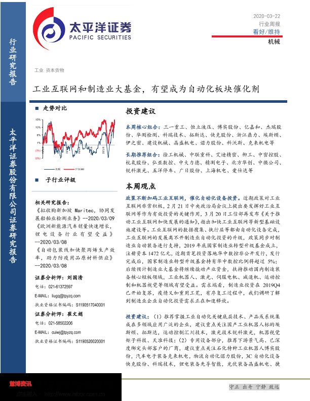 【太平洋证券】【20200322】20200322-太平洋-机械行业周报:工业互联网和制造业大基金,有望成为自动化板块催化剂-13页