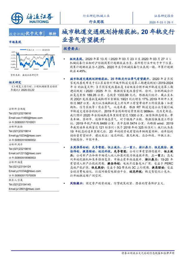 【海通证券】【20200329】机械工业行业周报:城市轨道交通规划持续获批,20年轨交行业景气有望提升-10页