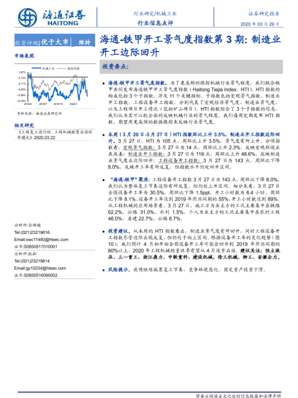 【海通证券】【20200329】海通-铁甲开工景气度指数第3期:制造业开工边际回升-5页