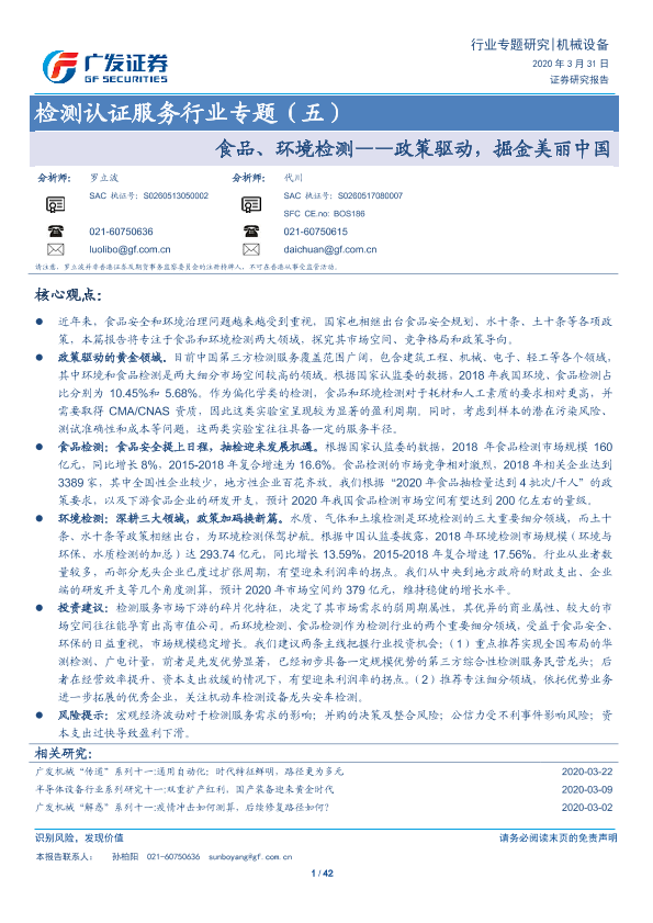 【广发证券】【20200331】检测认证服务行业专题(五)-食品、环境检测——政策驱动,掘金美丽中国-42页