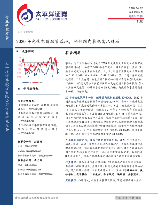 【太平洋证券】【20200402】2020年光伏电价政策落地,利好国内装机需求释放-4页