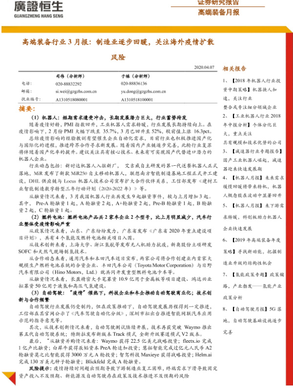 【广证恒生】【20200407】20200407-广证恒生证券研究所-高端装备行业3月报:制造业逐步回暖,关注海外疫情扩散风险-21页