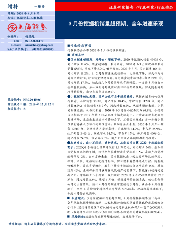 【上海证券】【20200409】20200409-上海证券-机械设备行业动态:3月份挖掘机销量超预期,全年增速乐观-2页
