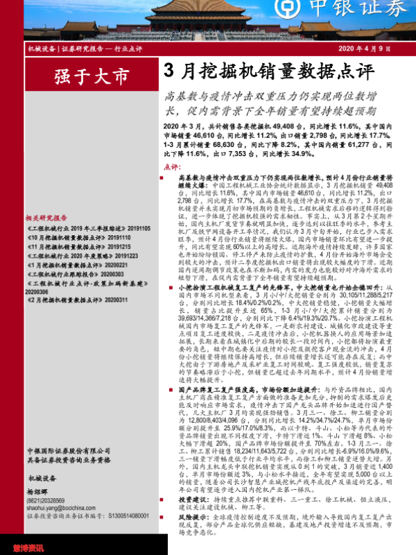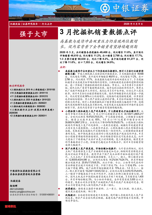 【中银证券】【20200409】3月挖掘机销量数据点评:高基数与疫情冲击双重压力仍实现两位数增长,促内需背景下全年销量有望持续超预期-5页