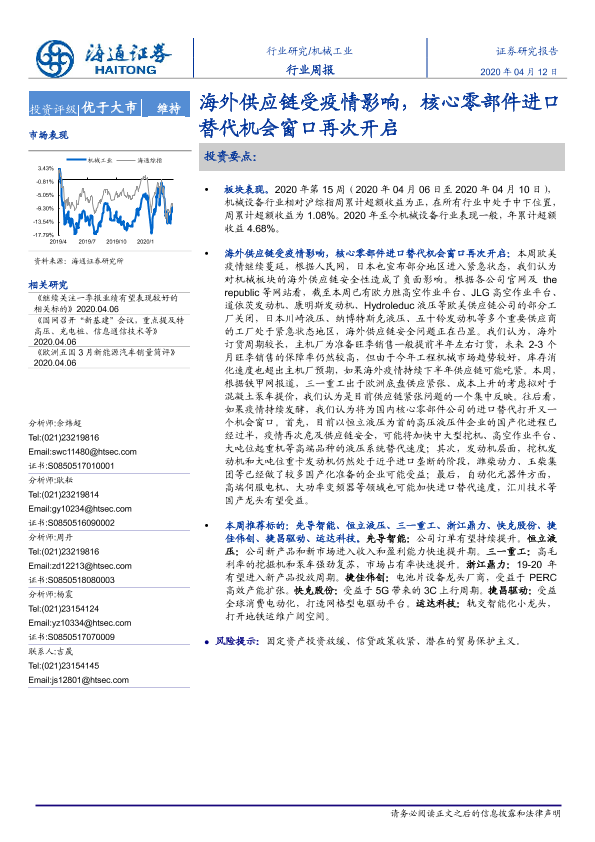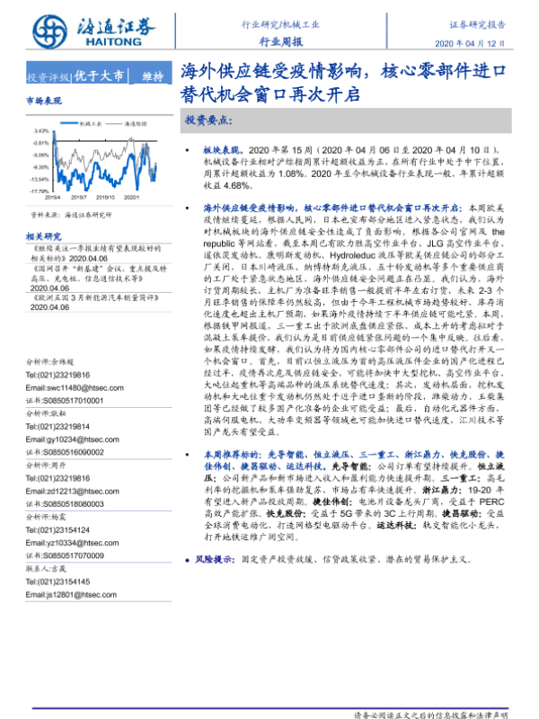 【海通证券】【20200412】20200412-海通证券-机械工业行业周报:海外供应链受疫情影响,核心零部件进口替代机会窗口再次开启-10页