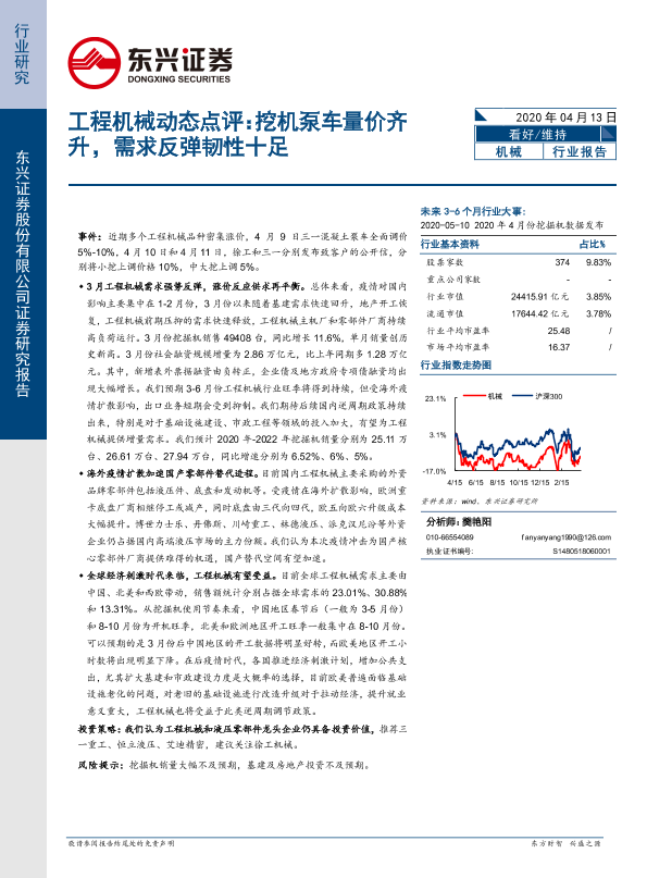 【东兴证券】【20200413】工程机械动态点评:挖机泵车量价齐升,需求反弹韧性十足-5页
