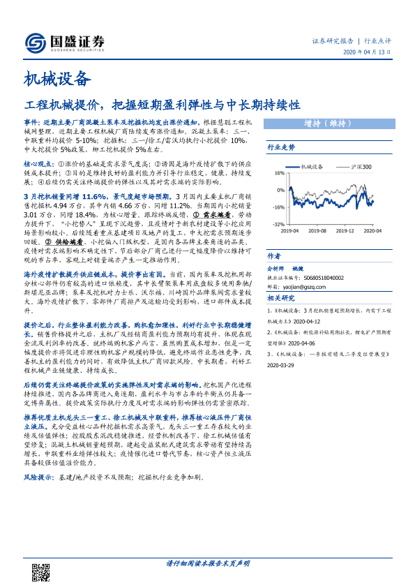 【国盛证券】【20200413】机械设备行业点评:工程机械提价,把握短期盈利弹性与中长期持续性-2页