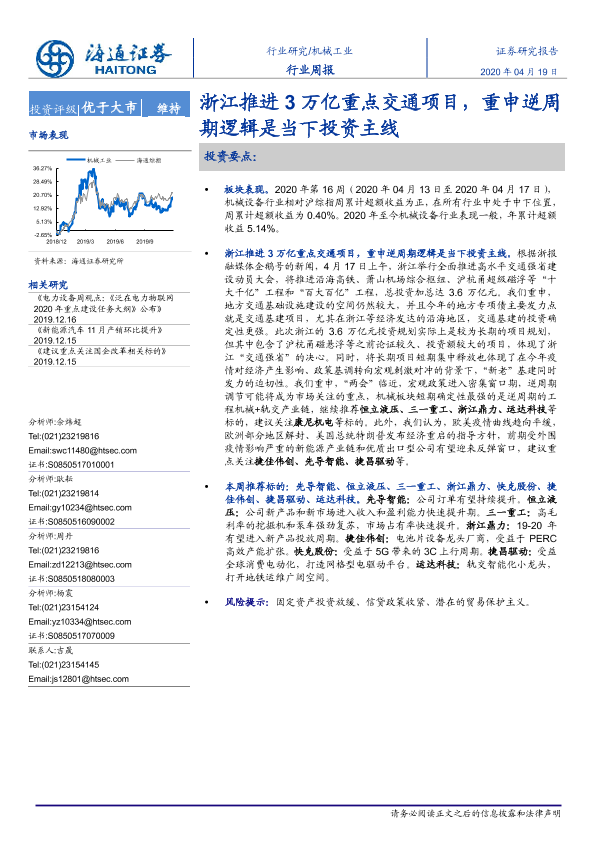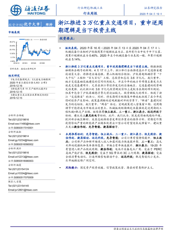 【海通证券】【20200419】20200419-海通证券-机械工业行业周报:浙江推进3万亿重点交通项目,重申逆周期逻辑是当下投资主线-10页