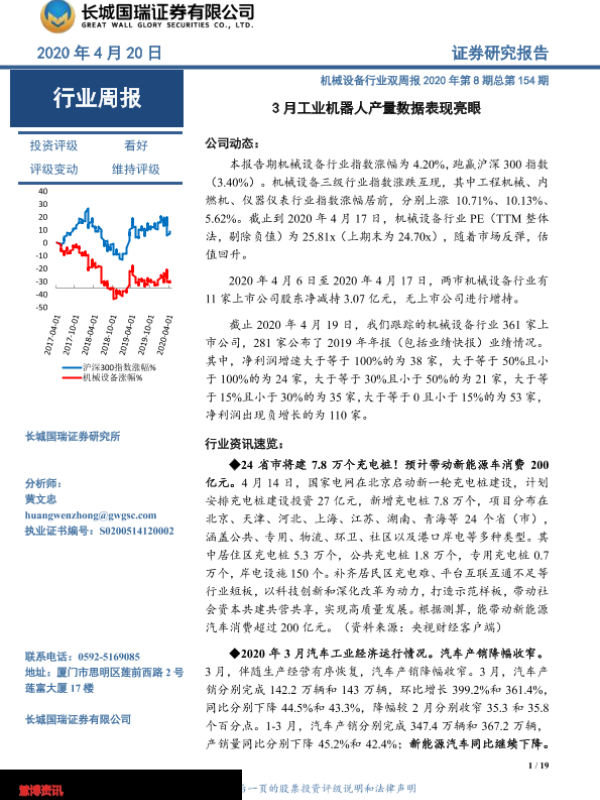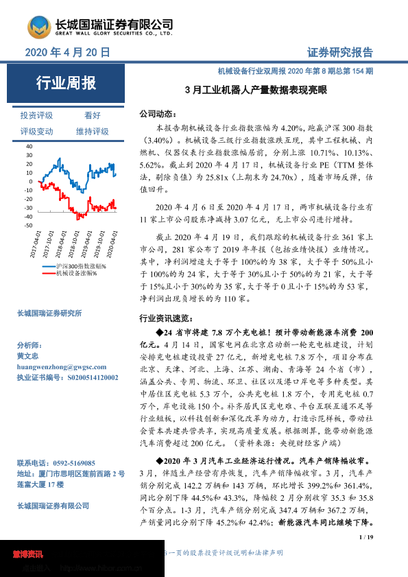 【长城国瑞证券】【20200420】机械设备行业双周报2020年第8期总第154期:3月工业机器人产量数据表现亮眼-19页
