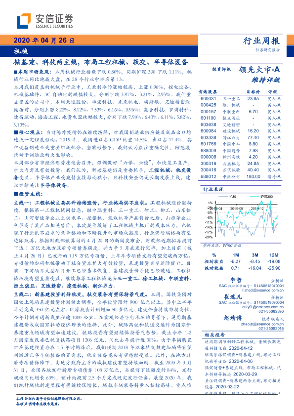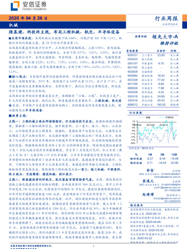 【安信证券】【20200426】20200426-安信证券-机械行业周报:循基建、科技两主线,布局工程机械、轨交、半导体设备-22页