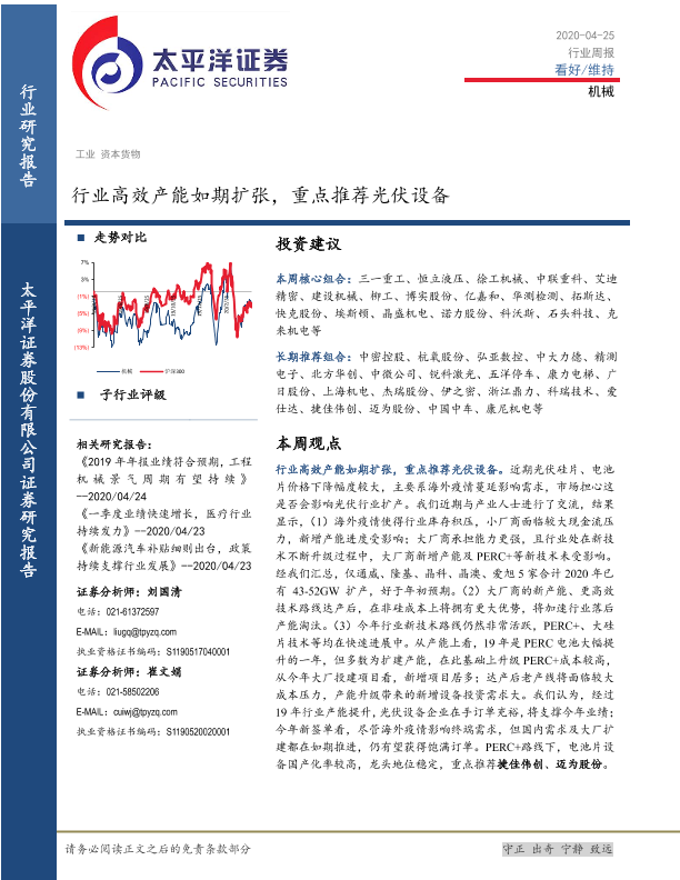 【太平洋证券】【20200425】20200425-太平洋-机械行业周报:行业高效产能如期扩张,重点推荐光伏设备-14页