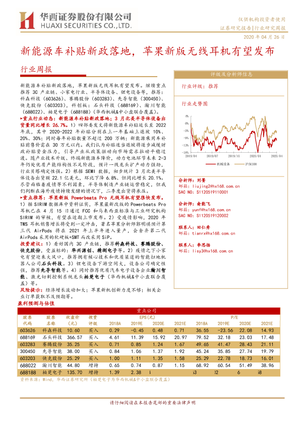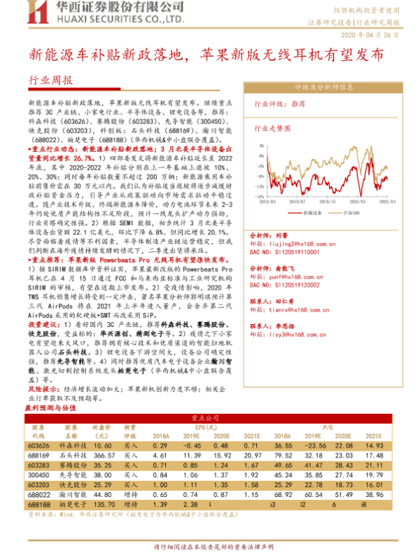 【华西证券】【20200426】20200426-华西证券-机械设备行业周报:新能源车补贴新政落地,苹果新版无线耳机有望发布-20页