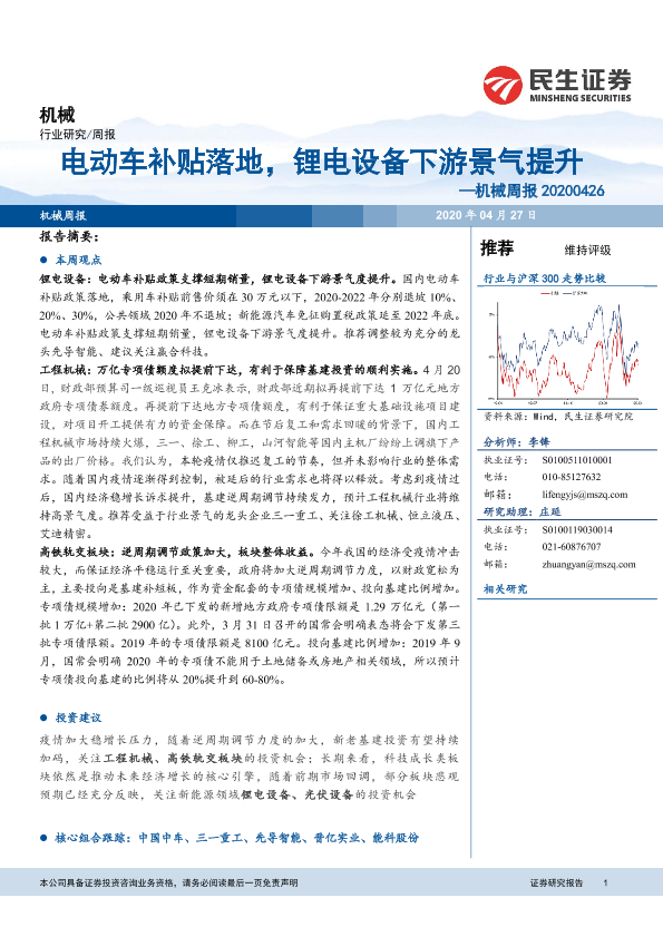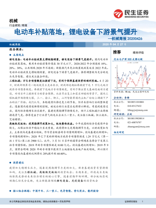 【民生证券】【20200427】机械周报:电动车补贴落地,锂电设备下游景气提升-23页