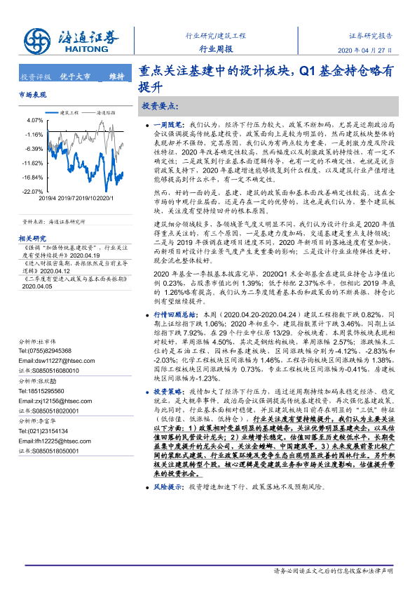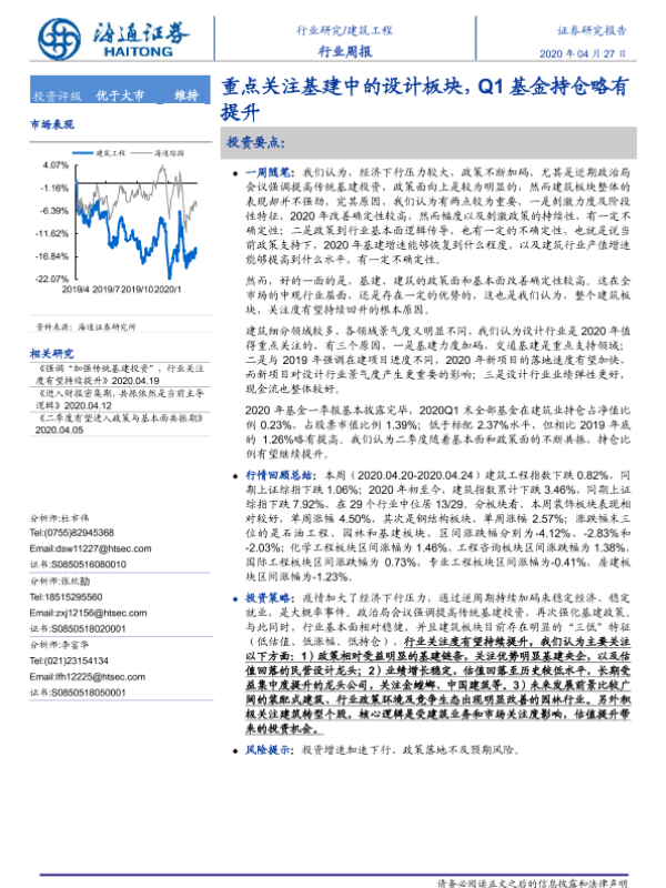 【海通证券】【20200427】20200427-海通证券-建筑工程行业周报:重点关注基建中的设计板块,Q1基金持仓略有提升-7页