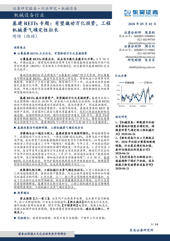 【东吴证券】【20200502】机械设备行业:基建REITs专题:有望撬动万亿投资,工程机械景气确定性拉长-14页