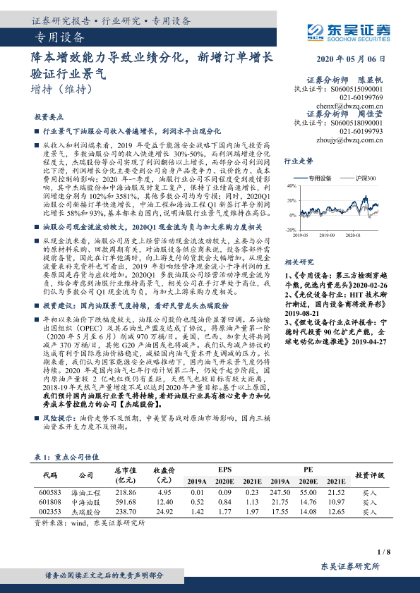 【东吴证券】【20200506】专用设备:降本增效能力导致业绩分化,新增订单增长验证行业景气-8页