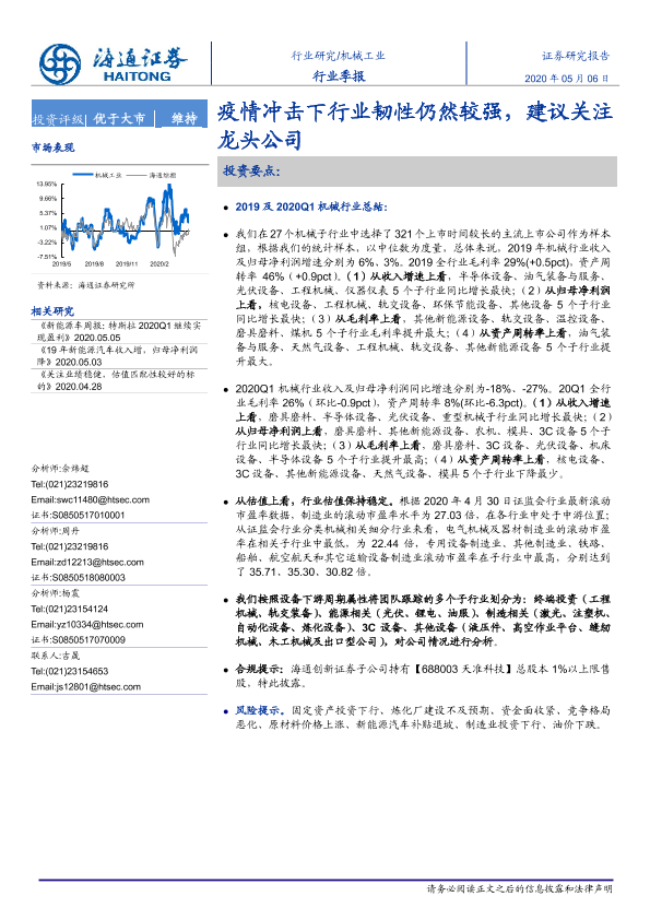 【海通证券】【20200506】20200506-海通证券-机械工业行业季报:疫情冲击下行业韧性仍然较强,建议关注龙头公司-33页