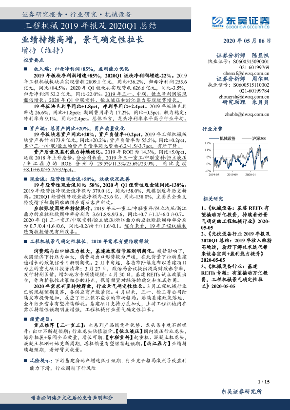 【东吴证券】【20200506】工程机械2019年报及2020Q1总结:业绩持续高增,景气确定性拉长-15页