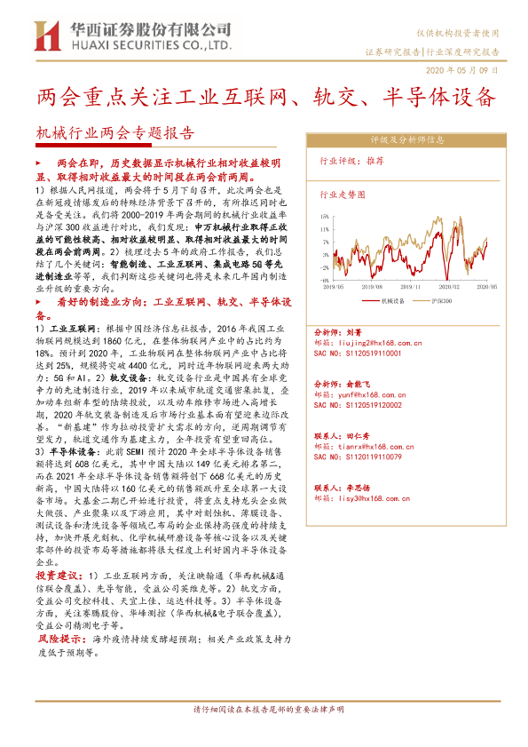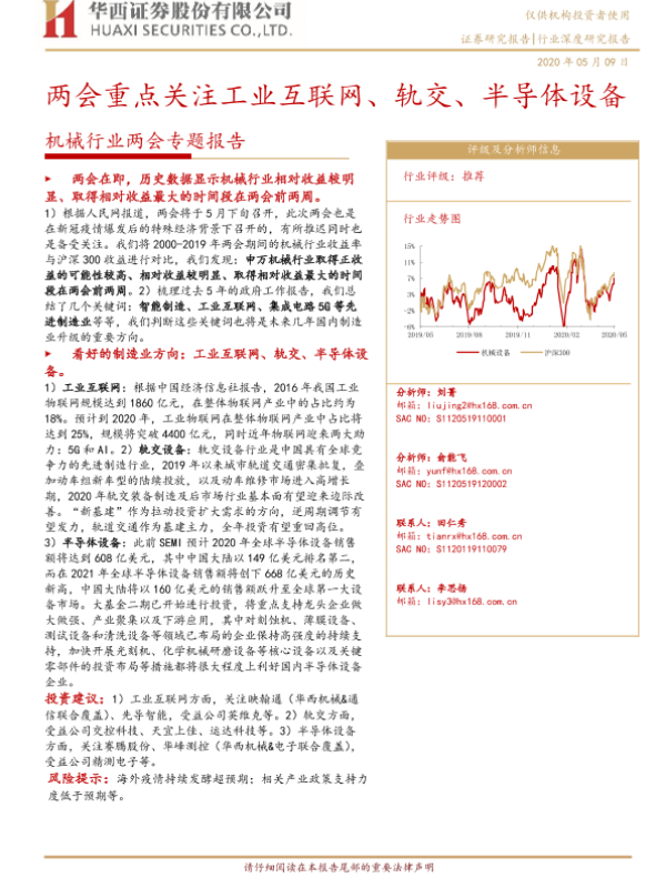 【华西证券】【20200509】20200509-华西证券-机械行业两会专题报告:两会重点关注工业互联网、轨交、半导体设备-30页