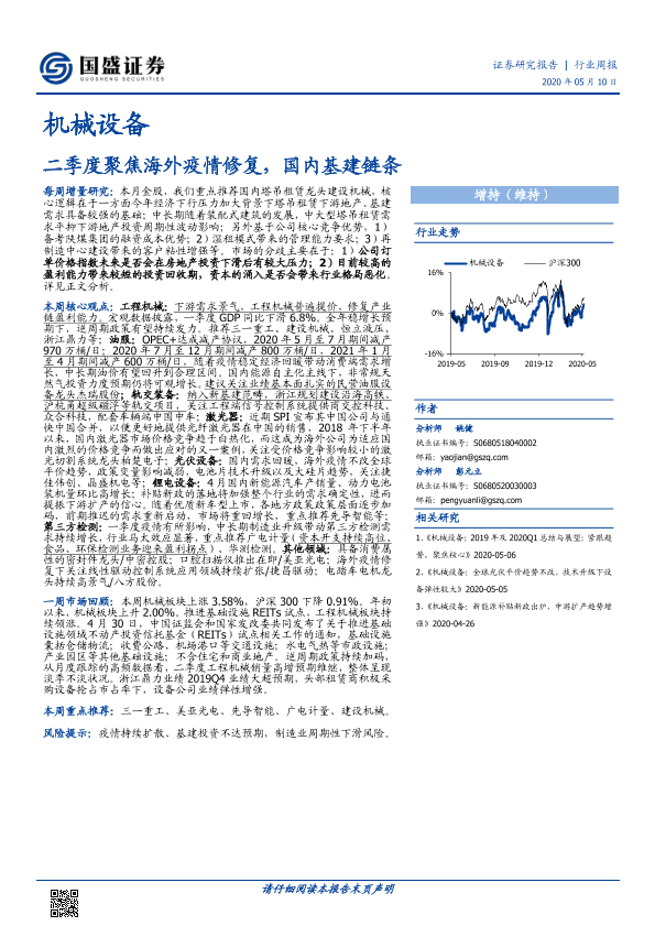 【国盛证券】【20200510】20200510-国盛证券-机械设备行业周报:二季度聚焦海外疫情修复,国内基建链条-12页