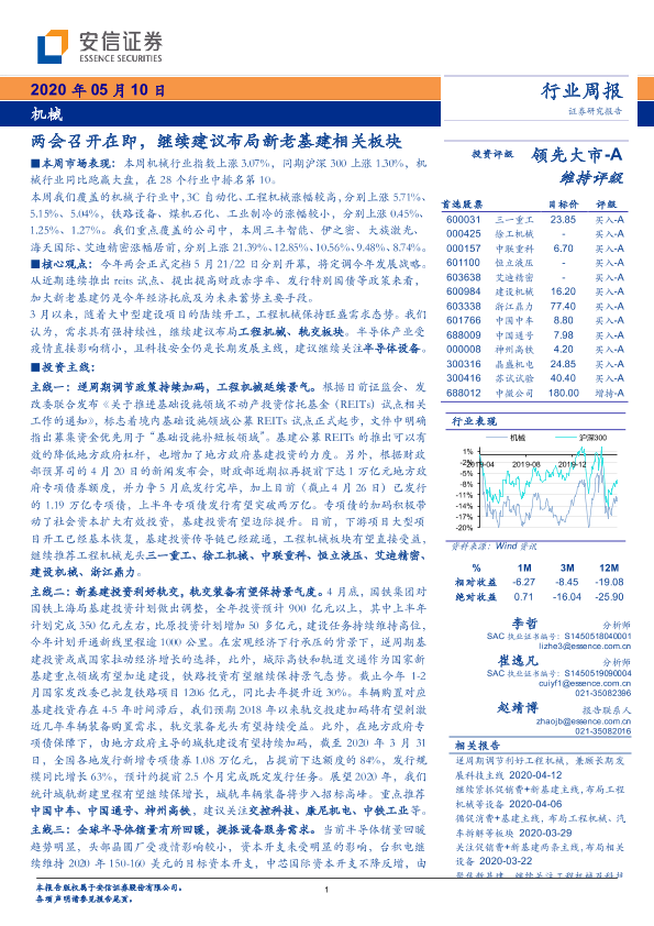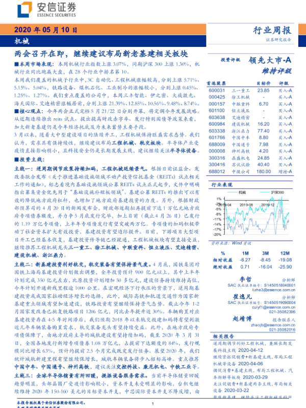 【安信证券】【20200510】20200510-安信证券-机械行业周报:两会召开在即,继续建议布局新老基建相关板块-20页