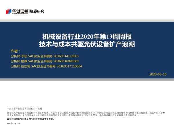 【华创证券】【20200510】机械设备行业2020年第19周周报:技术与成本共驱光伏设备扩产浪潮-25页