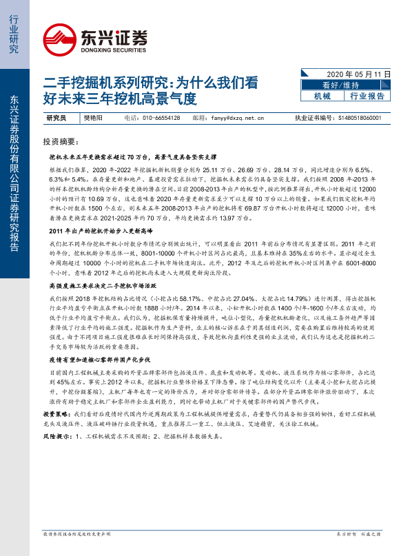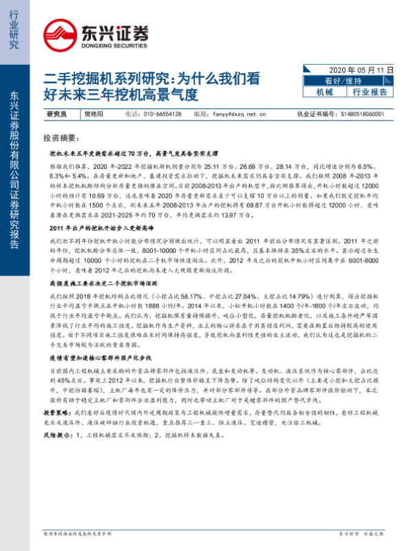 【东兴证券】【20200511】二手挖掘机系列研究:为什么我们看好未来三年挖机高景气度-17页