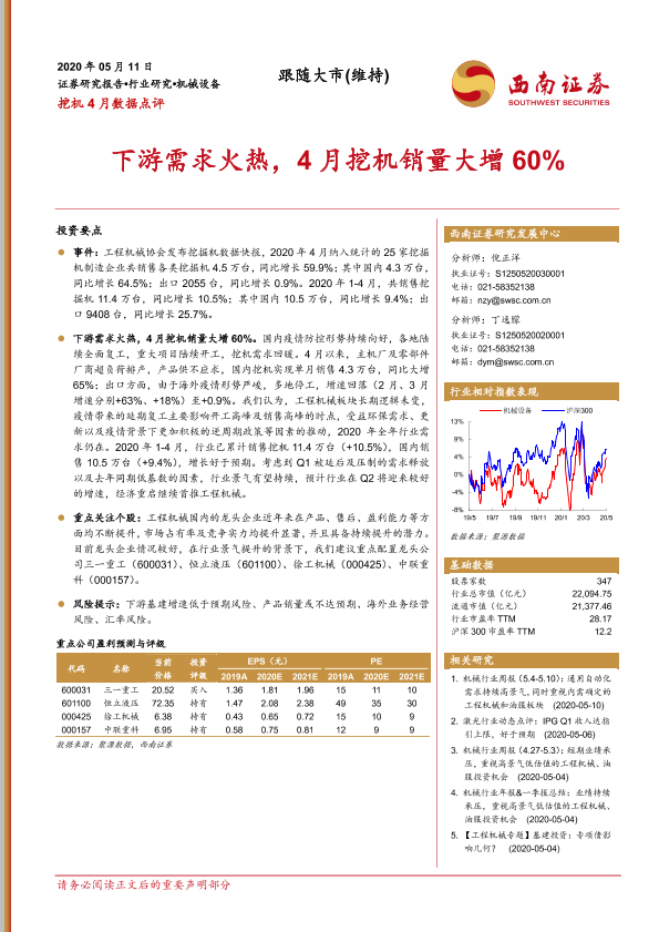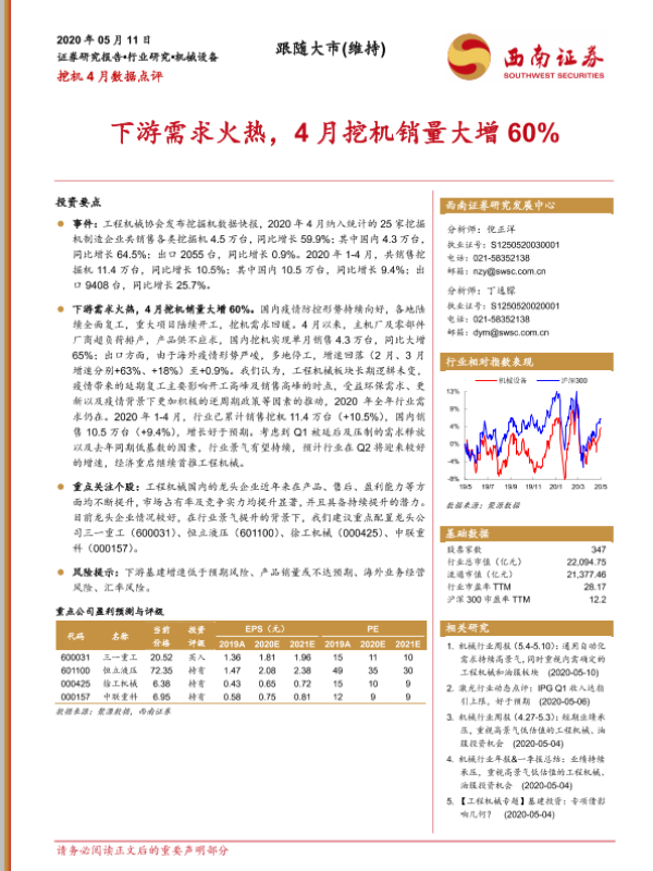 【西南证券】【20200511】挖机4月数据点评:下游需求火热,4月挖机销量大增60%-3页