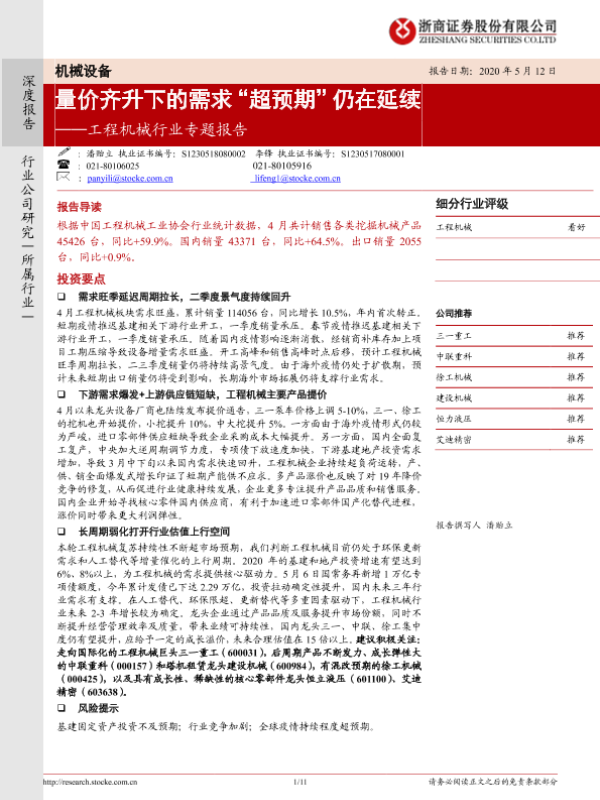 【浙商证券】【20200512】20200512-浙商证券-工程机械行业专题报告:量价齐升下的需求“超预期”仍在延续-11页