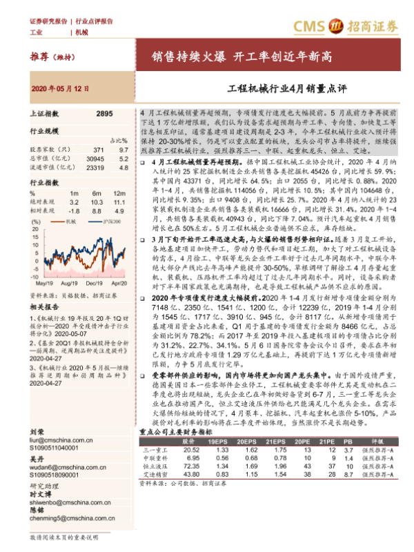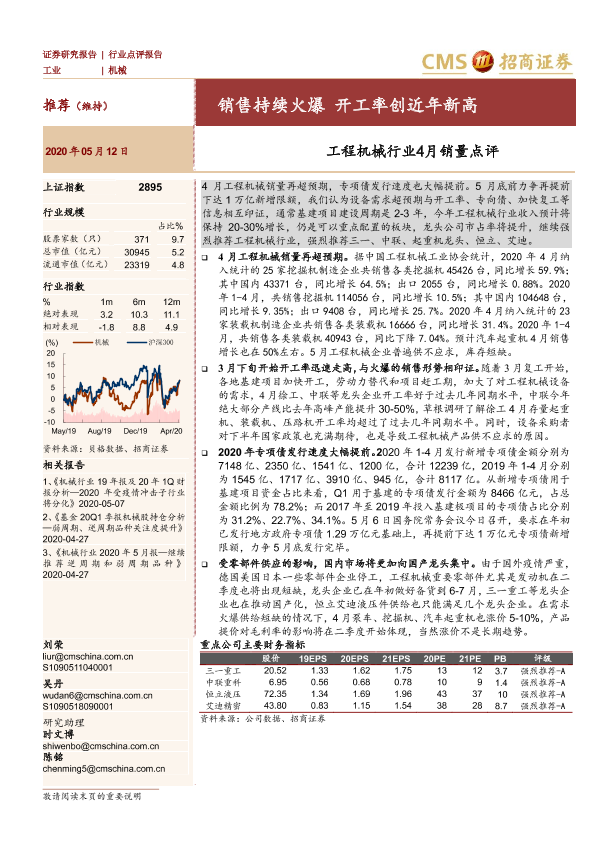 【海通证券】【20200512】工程机械行业4月销量点评:销售持续火爆 开工率创近年新高-3页