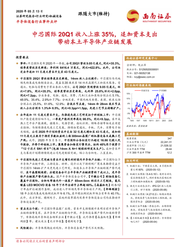 【西南证券】【20200513】20200513-西南证券-半导体设备行业事件点评:中芯国际20Q1收入上涨35%,追加资本支出带动本土半导体产业链发展-3页