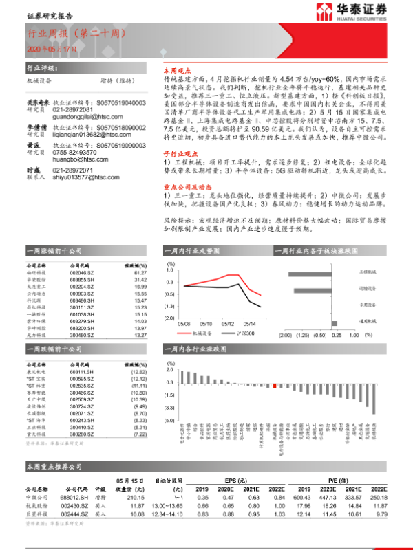 【华泰证券】【20200517】20200517-华泰证券-机械设备行业周报(第二十周)-11页