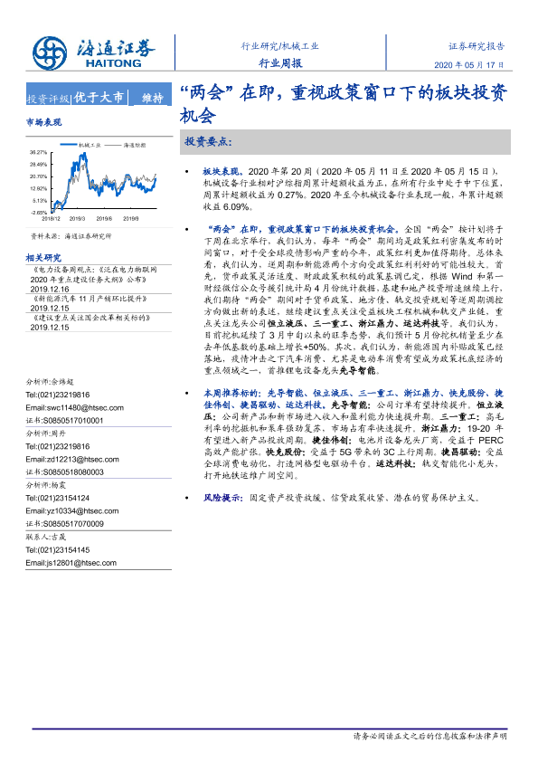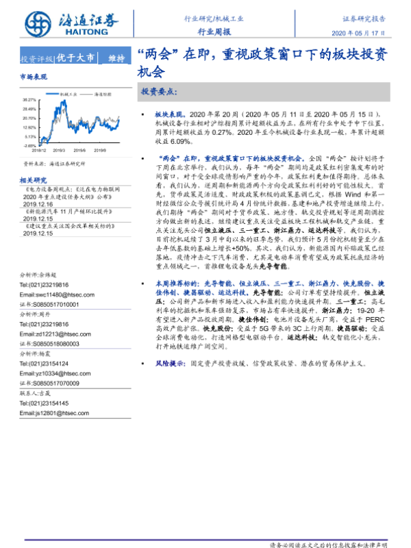 【海通证券】【20200517】机械工业行业周报:“两会”在即,重视政策窗口下的板块投资机会-10页