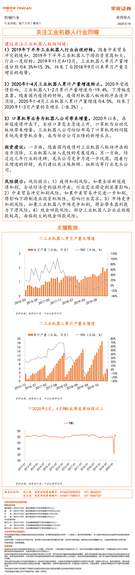【平安证券】【20200518】机械行业双周观点:关注工业机器人行业回暖-1页