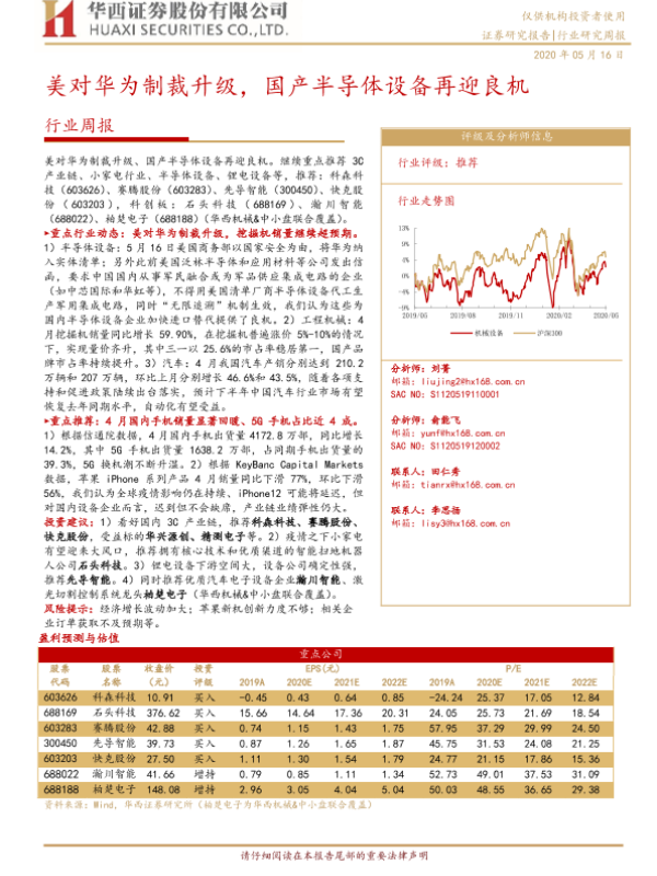 【华西证券】【20200516】20200516-华西证券-机械行业周报:美对华为制裁升级,国产半导体设备再迎良机-20页