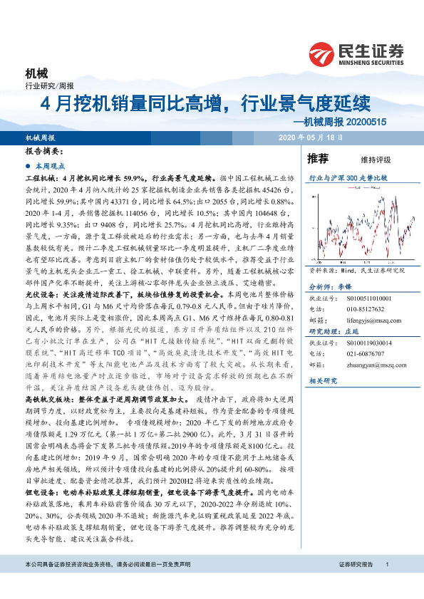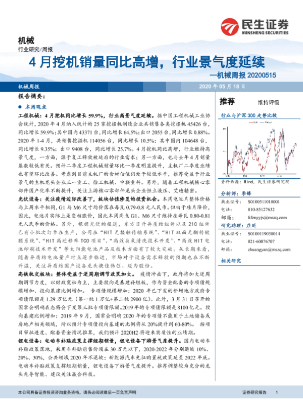 【民生证券】【20200518】20200518-民生证券-机械周报:4月挖机销量同比高增,行业景气度延续-22页